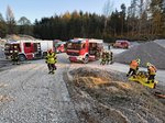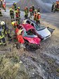 Am Kieswerk in Schernham wurde ein Unfall mit 3 Autos und zwei eingeklemmten Personen simuliert.