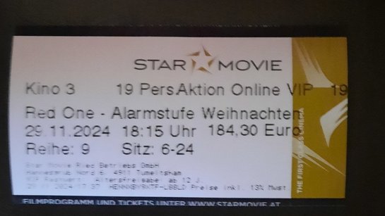 Nach langem versprechen lud die Feuerwehr unsere Jugend am Freitag 29.11 endlich ins Kino ein. Aufgeregt ging es um 17:15 Uhr nach Tumeltsham ins Starmovie. Dort bekamen die 16 Kids noch Popcorn und ein Getränk. Es wurde der Kinofilm " Red One - Alarmstufe Weihnachten" geschaut.