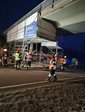 Ein Auto krachte in das Baugerüst der Brückensanierung.