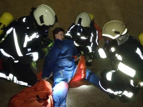 Das Übungsszenario wurde hintereinander von zwei Fahrzeugbesatzungen abgearbeitet und die Rettung der Puppe mit Rettungsleine, Leitern und Notrettungssets vorgenommen.